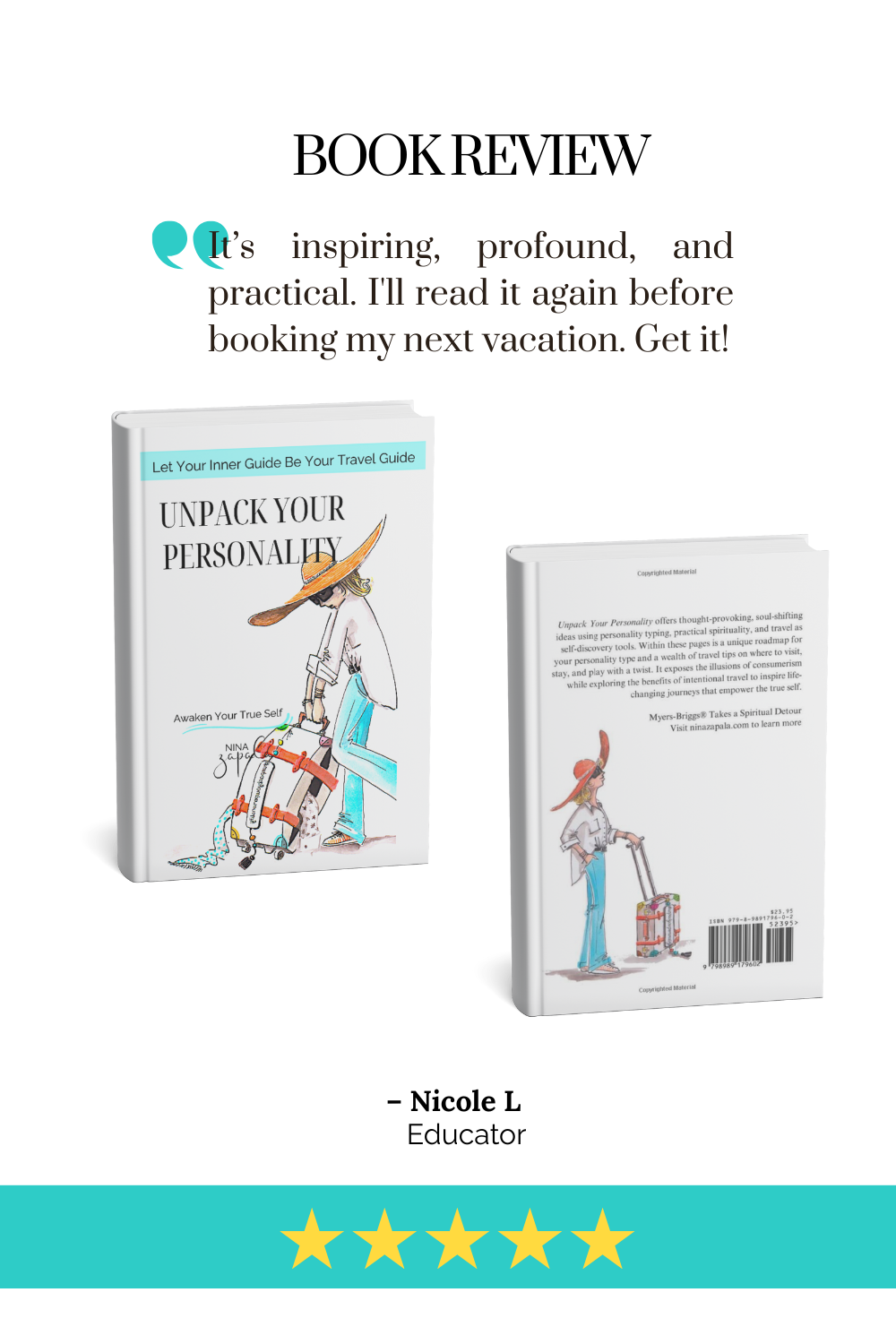 My debut book, Unpack Your Personality, illuminates how your personality interacts with a place, a culture, and people. It shifts the landscape of travel to align with your true self to enrich worldly pleasures while exploring the inner world of the soul.